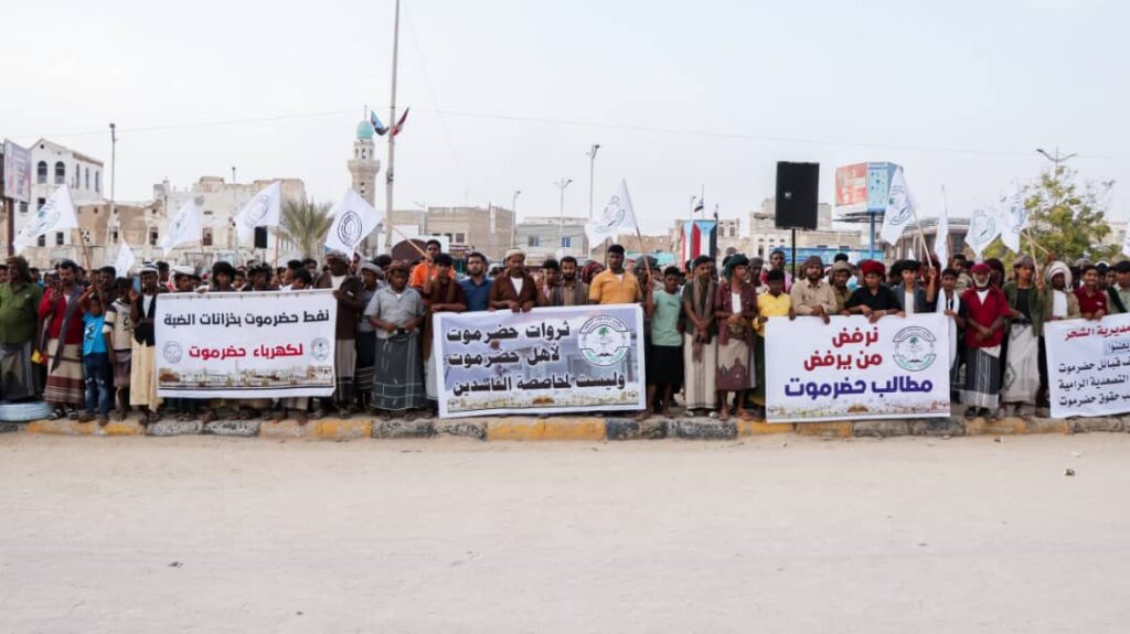 وقفة جماهيرية حاشدة في الشحر تندد بتدهور الأوضاع الخدمية والمعيشية وتؤيد تصعيد حلف قبائل حضرموت