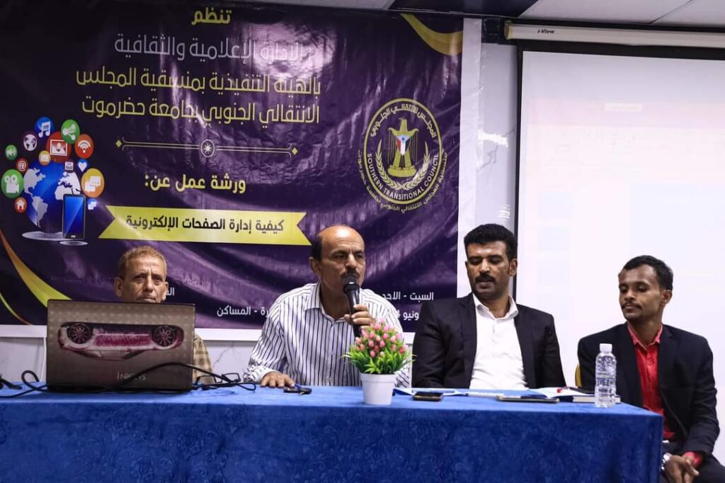 منسقية انتقالي جامعة حضرموت تنظم ورشة عمل عن كيفية إدارة الصفحات الإلكترونية