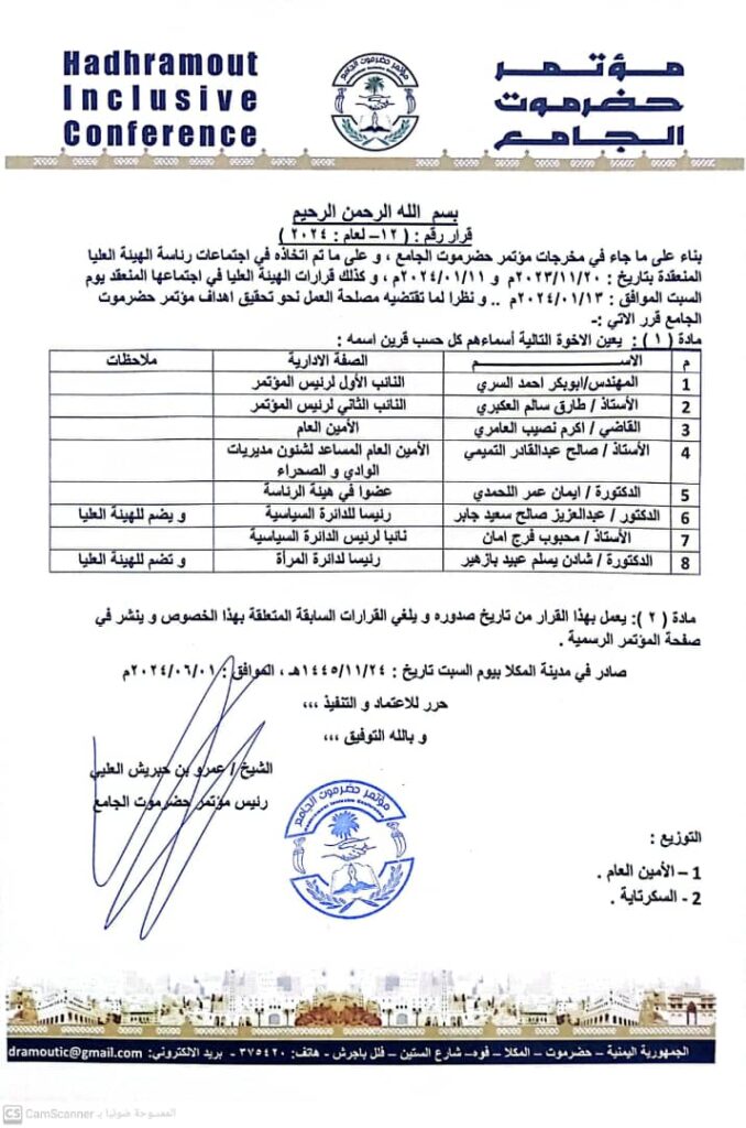 صدور قرار لرئيس مؤتمر حضرموت الجامع