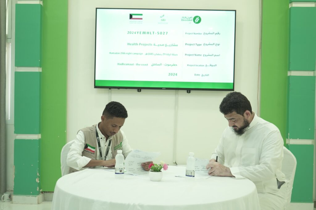 مؤسسة نهد ومكتب والعون المباشر باليمن يوقعان اتفاقية لتنفيذ ألف عملية لإزالة المياه البيضاء وزراعة العدسات بحضرموت