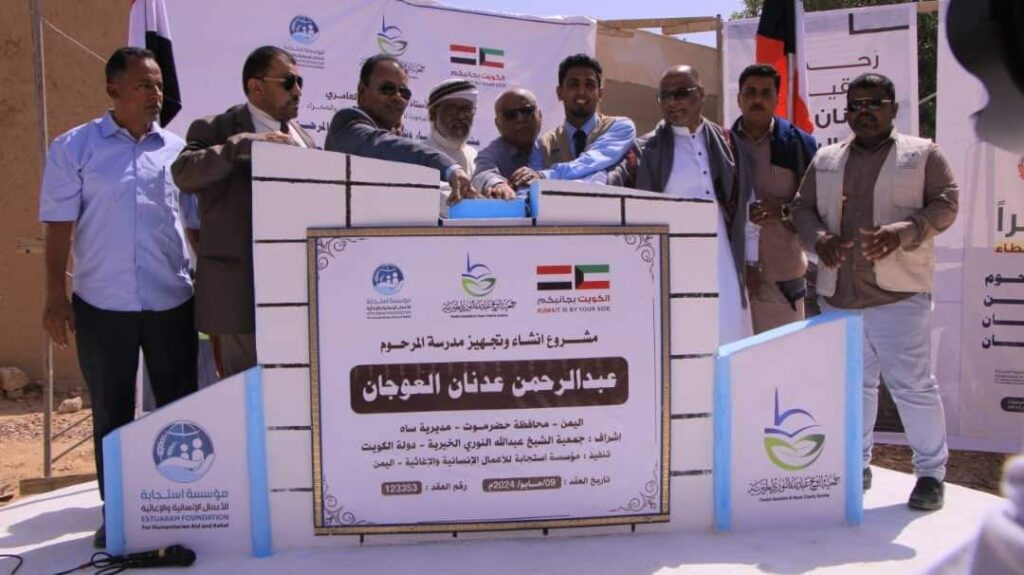 وكيل المحافظة يضع حجر الاساس لمشروع بناء مدرسة العوجان بمديرية ساه بدعم كويتي