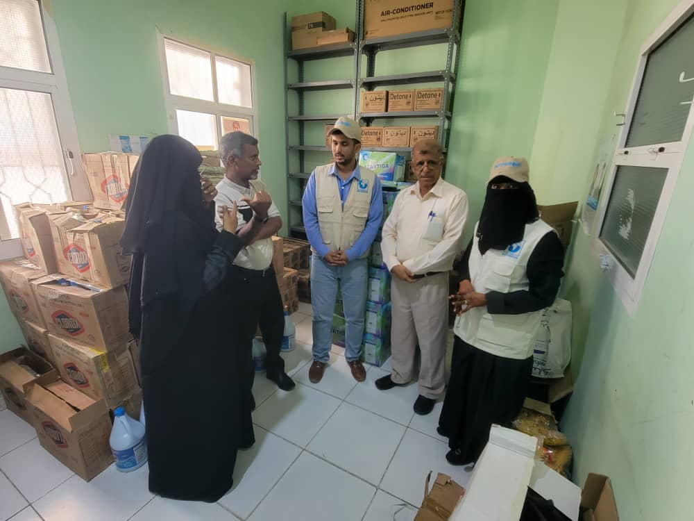 مكتب وزارة الصحة و السكان بحضرموت الساحل يدشن استلام الدفعة الأولى من منحة مواد النظافة و المعقمان بمركز حي السلام الصحي بالمكلا مقدمة منظمة أنترسوس