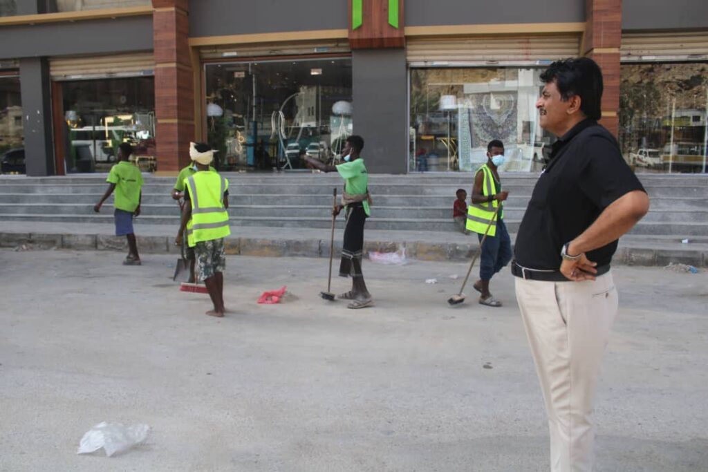 المدير العام لمديرية مدينة المكلا يتابع أعمال التصفية وإزالة مخلفات المنخفض الجوي