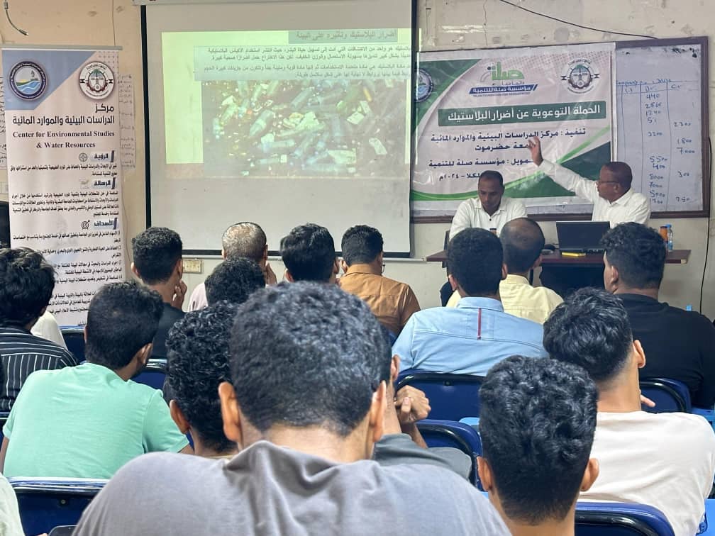 مركز الدراسات البيئية والموارد المائية بجامعة حضرموت يختتم المحاضرات التوعوية بالجامعات ضمن حملة التحذير من أضرار البلاستيك بتمويل من مؤسسة صلة للتنمية بالمكلا