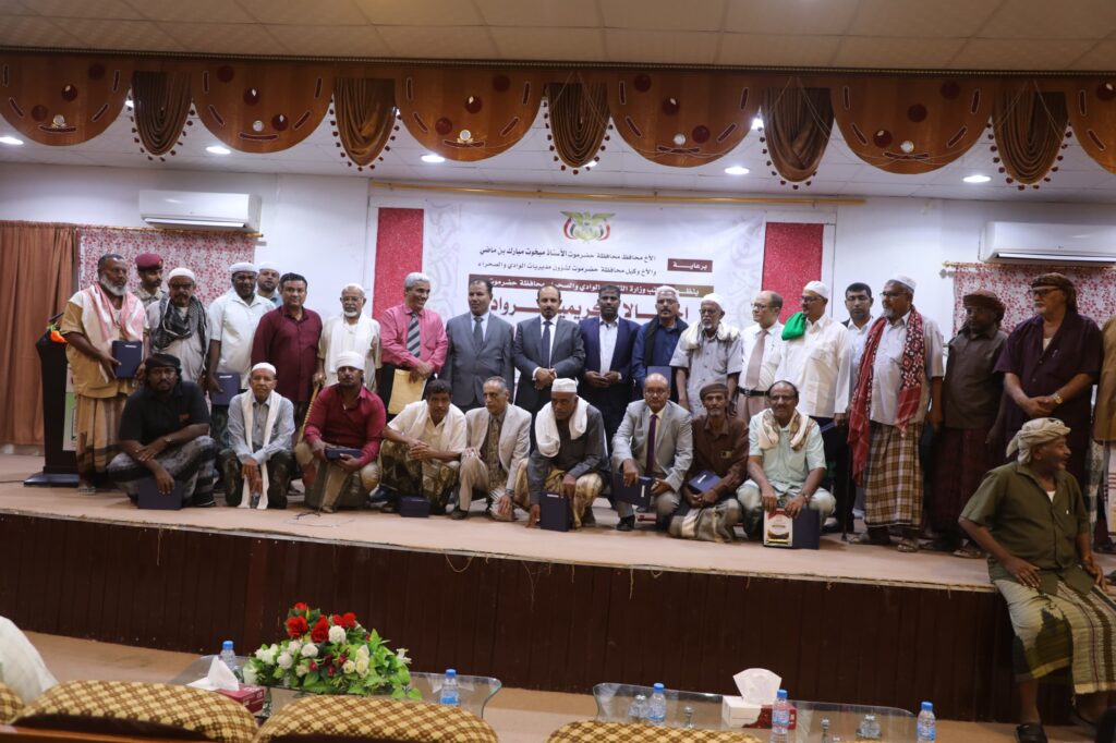 المكرّمون من قبل محافظ حضرموت اليوم من الكتّـاب والشعراء والفنانين في فعالية رواد الثقافة والأدب بحضرموت في الفعالية الوفائية بمدينة سيئون