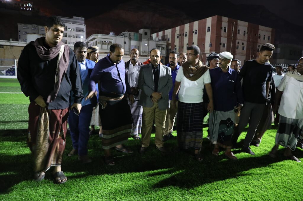 محافظ حضرموت يطلع على عملية فرش العشب الاخضر والتجهيزات الاخيرة لمنشأة نادي التضامن