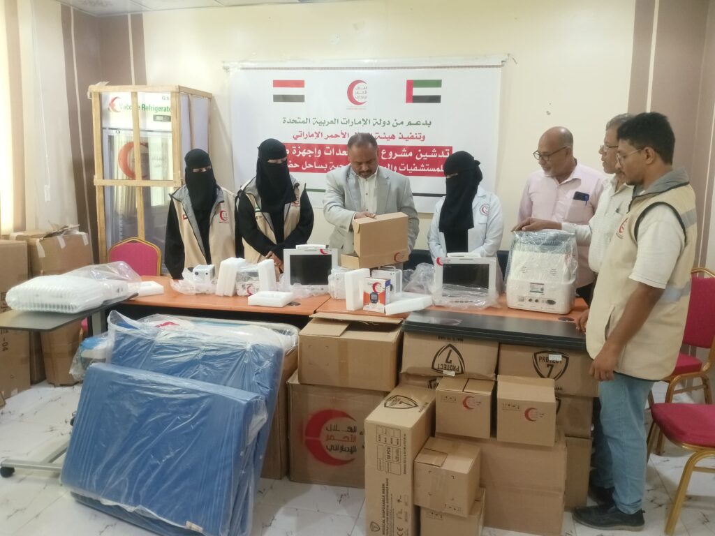 الجمحي يدشن مشروع توزيع معدات و أجهزة طبية للمستشفيات و المراكز الصحية بساحل حضرموت مقدمة من هيئة الهلال الأحمر الاماراتي بمستشفى المكلا للأمومة والطفولة