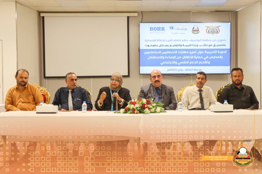 المدير باعبّاد يحضر جانباً من الدورة التدريبية حول تعزيز مهارات الأخصائيين الاجتماعيين بمدارس المكلا