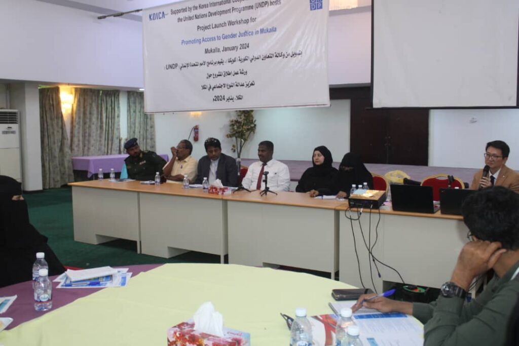 قيام ورشة عمل إطلاق المشروع حول تعزيز عدالة النوع الإجتماعي بمديرية مدينة المكلا