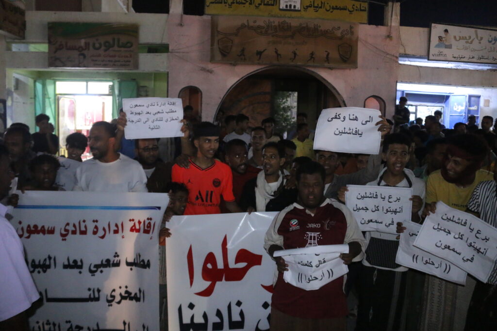 الشحر تشهد وقفة احتياجية أمام مبنى نادي سمعون مطالبين بتغيير إدارة النادي