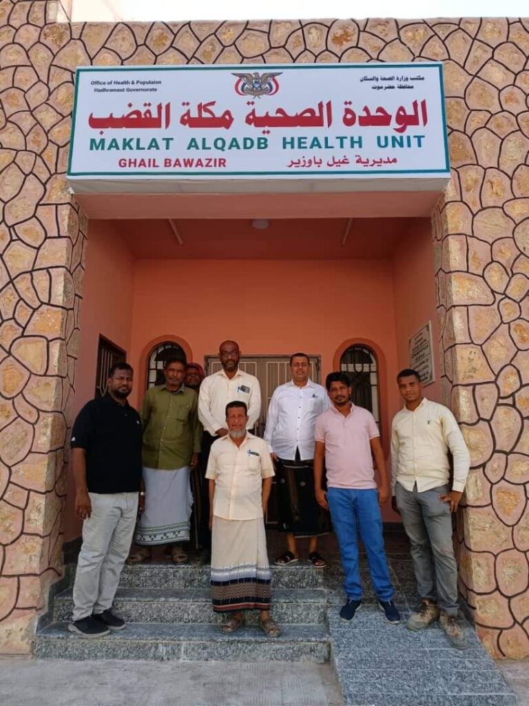 الاستلام الابتدائي لمبنى الوحدة الصحية بمنطقة مكلة القضب بمديرية غيل باوزير