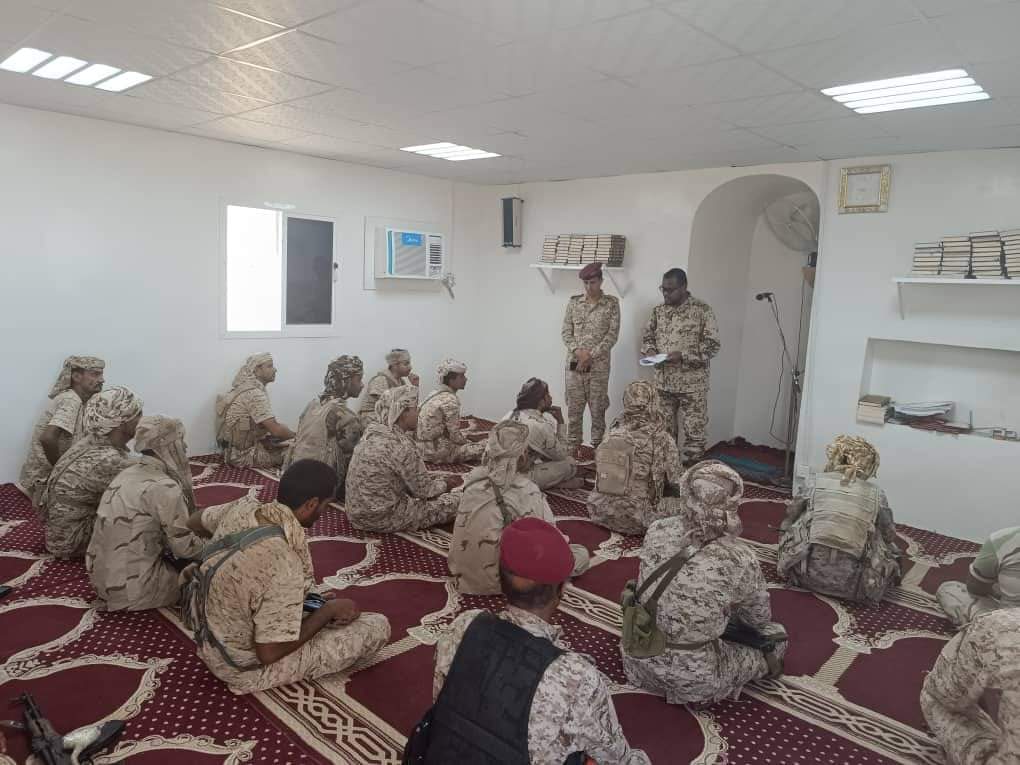 فريق التوجيه المعنوي بمعسكر الأحقاف “القيعان” ينفذ محاضرة توعوية