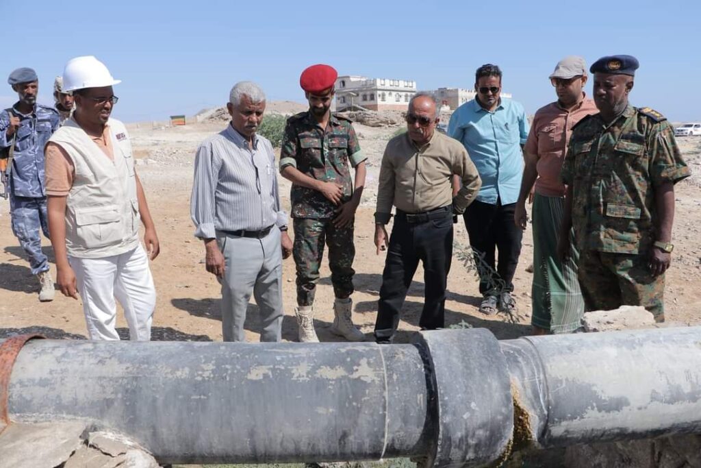 السلطة بالشحر تتابع أعمال مشروع ربط أبار حقل المويجة بالطاقة الشمسية بقدرة نصف ميقا ومشروع استبدال الخط الناقل من الدكداك إلى خزان الرصاصة بالبولترين بطول 12 كيلو