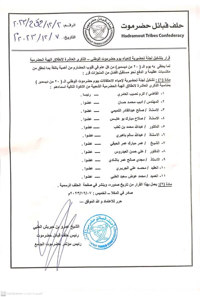 لجنة تحضيرية لإحياء يوم حضرموت الوطني (الذكرى العاشرة لانطلاق الهبة الحضرمية)
