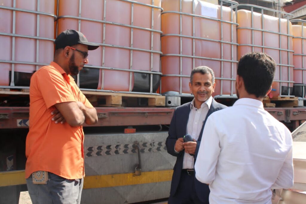 الوكيل باصريح يدشن استلام 390 برميل زيت المستخدم في تصنيع التونة.