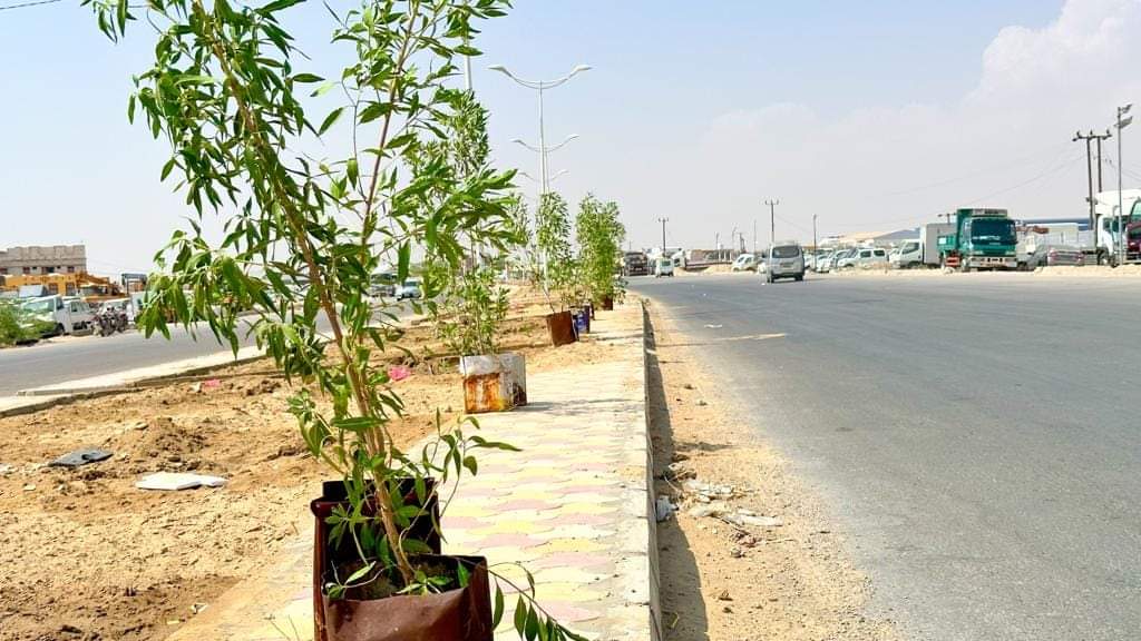 مشروع النظافة والتحسين بالشحر ينفذ غرس 200 غرسة في المدخل الغربي