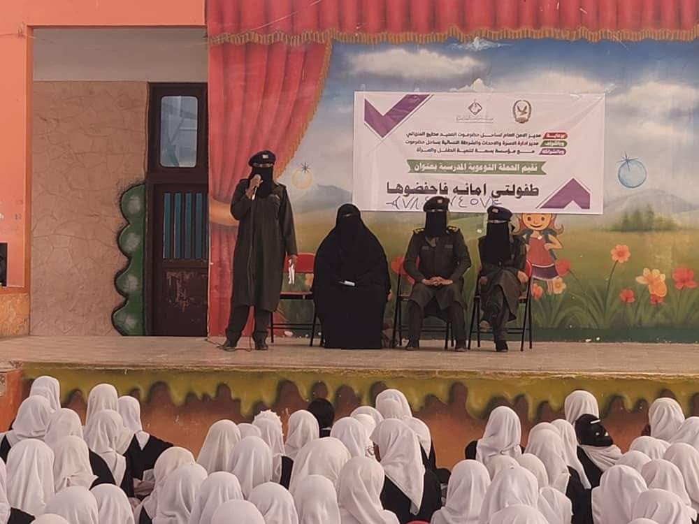 الشرطة النسائية تدشن الحملة التوعوية المدرسية “طفولتي أمانة فاحفظوها“ بمدارس مدينة المكلا