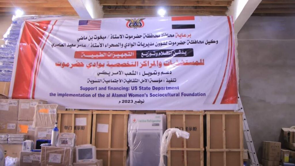 وكيل المحافظة يدشن استلام وتوزيع معدات وأجهزة طبية مقدمة من الشعب الامريكي للمستشفيات والمراكز التخصصية بوادي وصحراء حضرموت