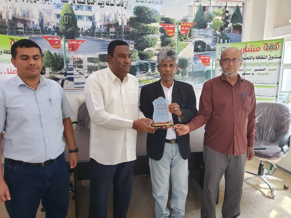 صندوق النظافة والتحسين بوادي وصحراء حضرموت يكرم مؤسسة ع بارجاء للوسائل والتقنيات التعليمية والتدريب