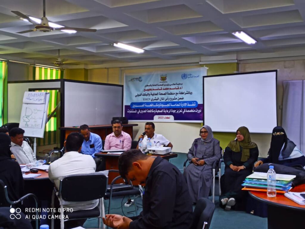 اختتام فعاليات الدورات المتخصصة في تعزيز جودة الرعاية الصحية ومكافحة العدوى في المستشفيات بالمكلا بدعم من منظمة الصحة العالمية