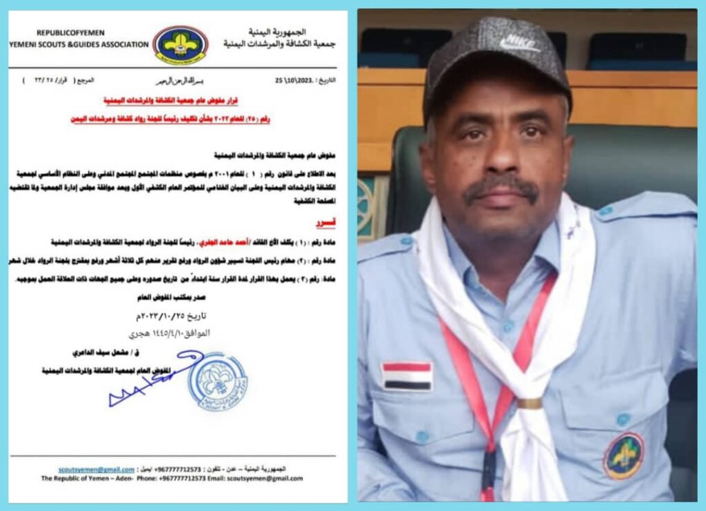 تكليف القائد احمد حامد الجفري رئيسا للجنة الرواد لجمعية الكشافة والمرشدات اليمنية