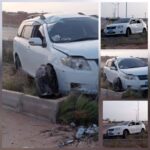 حادث انقلاب مروع لسيارة في مدخل الشحر الغربي يصيب سائقًا بإصابة بالغة