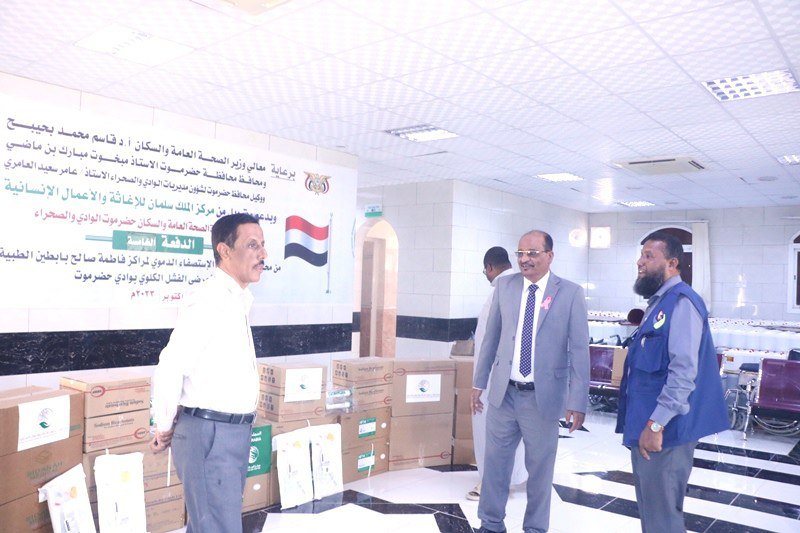 تسليم الدفعة الخامسة من مستلزمات الاستصفاء الدموي لمراكز الكلى بحضرموت الوادي
