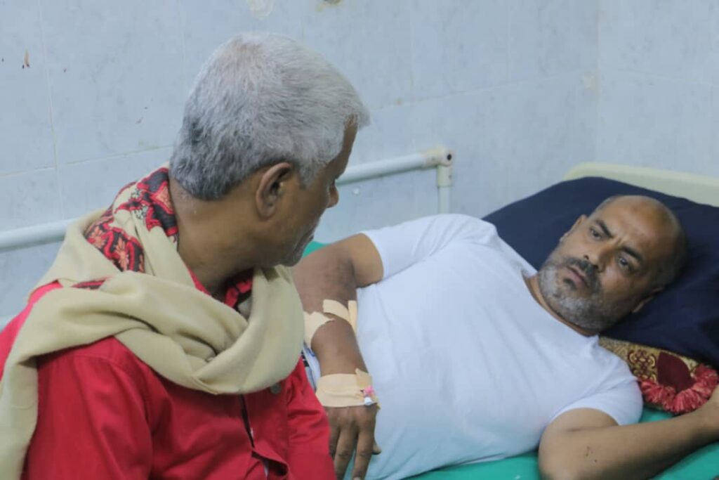 مدير عام الشحر يطمئن على صحة مدير البحث الجنائي بالحامي إثر تعرضه لحادث حرق دراجته النارية أدت لإصابته بجروح توصف بالمتوسطة