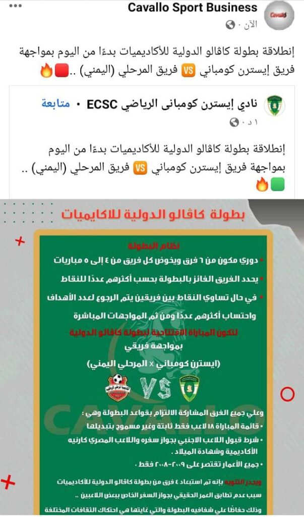صورة لاكاديمية الشرارة الرياضية الدولية بمحافظة حضرموت مديرية الشحر اثناء حضور المباراة الافتتاحية لبطولة كاڤلو الدولية للاكاديميات العربية والإفريقية