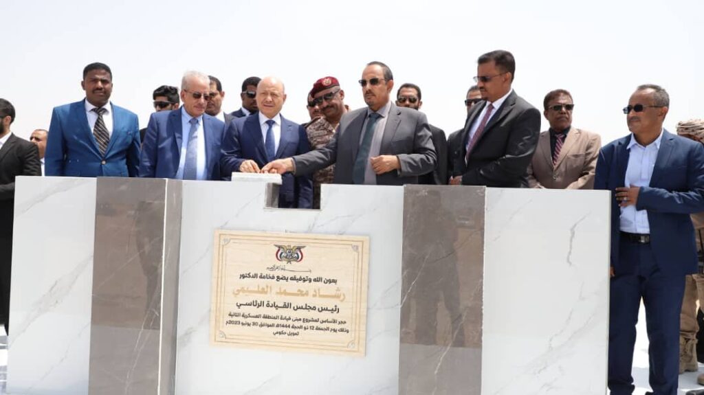 رئيس مجلس القيادة الرئاسي يضع حجر الأساس لمشروع المبنى الجديد لقيادة المنطقة العسكرية الثانية بمنطقة الريان