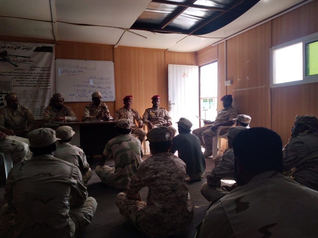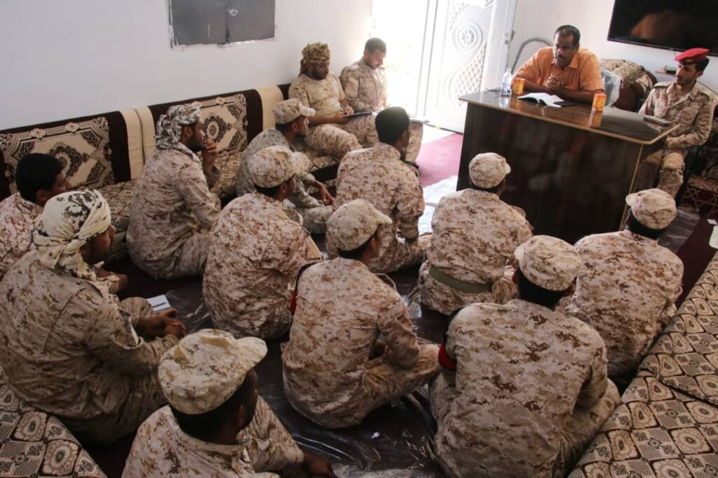 التوجيه المعنوي في لواء النخبة الحضرمي ينفذ محاضرة توعوية عن الزمالة العسكرية في احدى النقاط العسكرية التابعة للواء