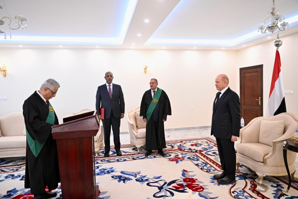 القاضي سهل حمزة يؤدي اليمين القانونية أمام رئيس مجلس القيادة الرئاسي