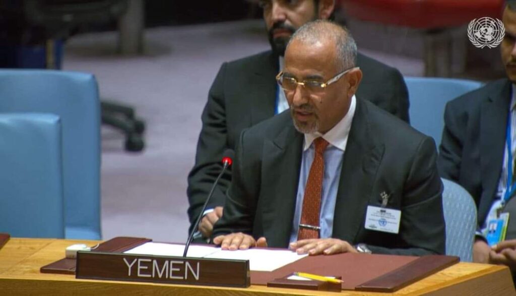 الزُبيدي يلقي كلمة أمام مجلس الأمن الدولي بجلسة المناقشة المفتوحة رفيعة المستوى