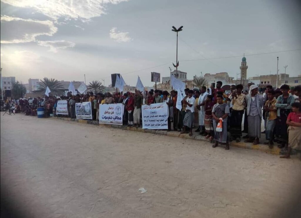وقفة جماهيرية حاشدة في الشحر تندد بتدهور الأوضاع الخدمية والمعيشية وتؤيد تصعيد حلف قبائل حضرموت