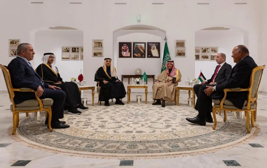 اجتماع سداسي بالرياض يؤكد على ضرورة اتخاذ خطوات لتنفيذ حل الدولتين والاعتراف بدولة فلسطين