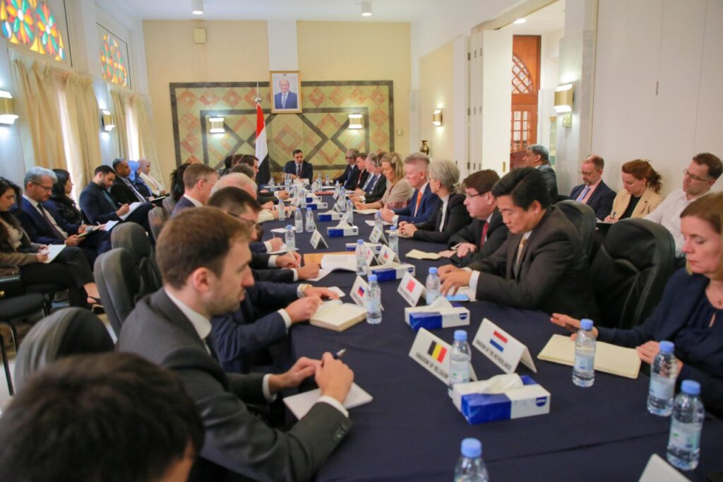 وزير الخارجية يعقد لقاءاً موسعاً بعدد من رؤساء البعثات الدبلوماسية لدول الاتحاد الأوروبي