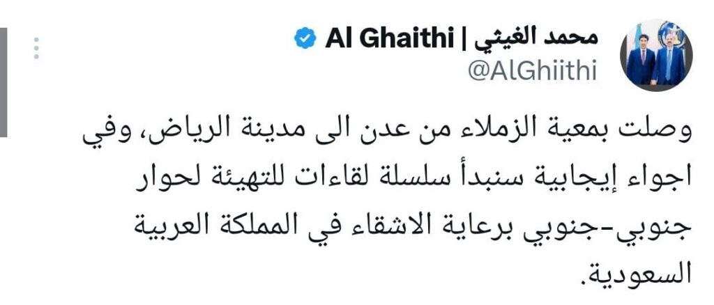الغيثي يكشف من الرياض عن ترتيبات لانطلاق حوار جنوبي لتعزيز التوافق