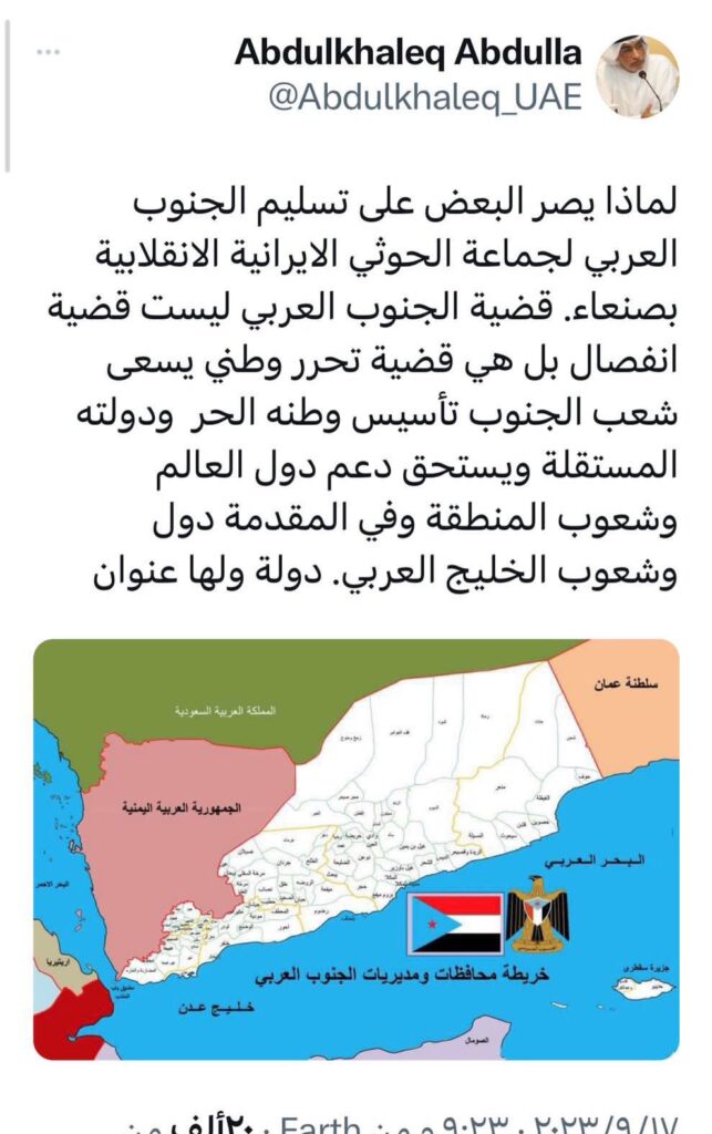 دولة ولها عنوان”.. أكاديمي إماراتي متسائلا: “لماذا يصر البعض على تسليم جنوب اليمن للحوثي؟”