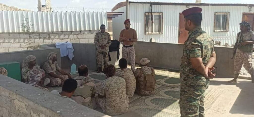التوجيه المعنوي بلواء الضبة يلقي محاضرة توعوية لمنتسبي نقطة بوابة الشحر